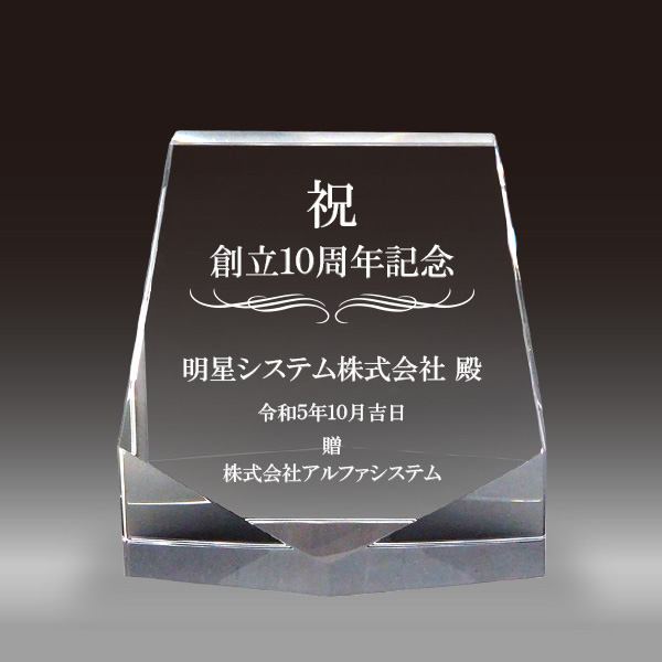 クリスタル楯(盾)に文字や絵柄を彫刻